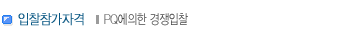 ÀÔÂûÂü°¡ÀÚ°Ý»çÀü½É»çÁ¦(Pre-Qualification)¶õ ÀÔÂû¿¡ Âü¿©ÇϰíÀÚ ÇÏ´Â ÀÚ¿¡ ´ëÇÏ¿© »çÀü¿¡ ½Ã°ø°æÇ衤±â¼ú´É·Â¡¤°æ¿µ»óÅ ¹× ½ÅÀεµ µîÀ» Á¾ÇÕÀûÀ¸·Î Æò°¡ÇÏ¿© ½Ã°ø´É·ÂÀÌ ÀÖ´Â Àû°Ý¾÷ü¸¦ ¼±Á¤ÇÏ°í µ¿ Àû°Ý¾÷ü¿¡°Ô ÀÔÂûÂü°¡ÀÚ°ÝÀ» ºÎ¿©ÇÏ´Â Á¦µµ